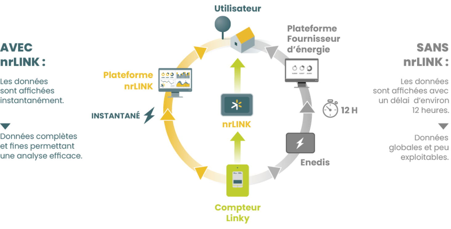 Le nrLINK® est destiné aux foyers français qui souhaitent réduire leur facture énergétique, gagner en pouvoir d’achat et diminuer leur empreinte carbone ! Une innovation labellisée LinkyReady, le nrLINK® redonne à chacun le pouvoir de faire des économies d’énergie et de ne plus consommer sans savoir. Le nrLINK® offre les moyens de ne consommer que ce dont on a besoin en voyant en direct d’où proviennent ses dépenses et l’impact de ses éco-gestes sur son budget et son empreinte carbone.